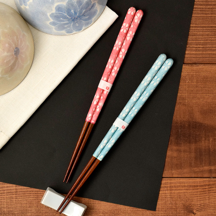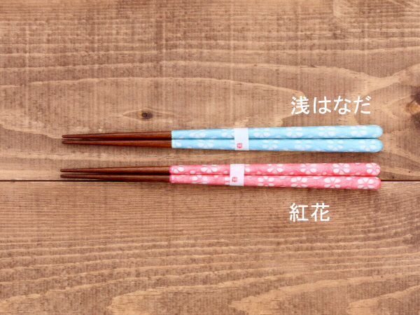 やわらかな青色の「浅はなだ」と、渋みのある「紅花」の2色は、夫婦箸としてお使いいただくのにぴったりな組み合わせですよ。