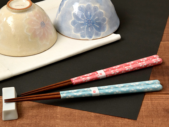 やわらかな青色の「浅はなだ」と、渋みのある「紅花」の2色は、夫婦箸としてお使いいただくのがおすすめ。