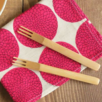 口当たりが優しい木のカトラリー。フォークのような形状のデザートピックです。