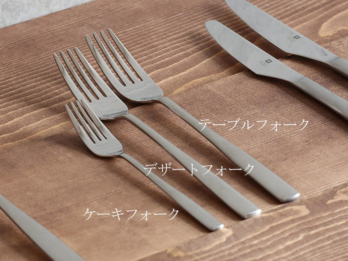 燦(SAN)シリーズでは、テーブルフォークの他、デザートフォーク、ケーキフォークをご用意。