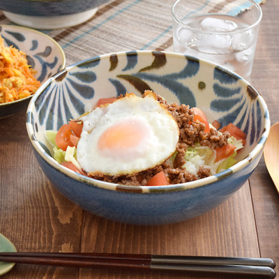 うどんや蕎麦の麺鉢、ご飯ものの丼料理と相性のいいどんぶり。カフェ風のロコモコ丼など、おしゃれな料理も引き立ててくれます。