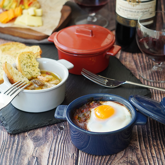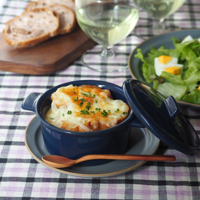 ミニサイズのグラタンは軽く済ませたい時のランチにも。おもてなしには蓋を利用して、蓋を開けた時のワクワク感の演出もできますよ。