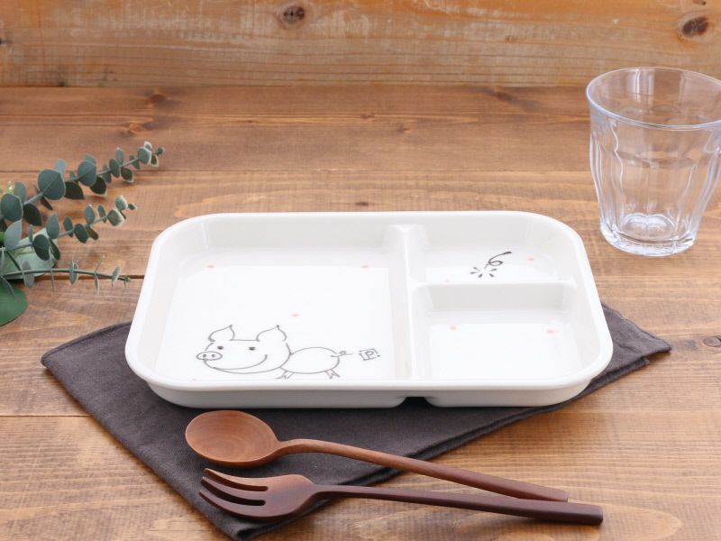 かわいいアニマル柄でほっこり癒される、楽しい子供用食器 在庫限り お子様ランチプレート 23.5cm アニマルkids こぶたスマイル アウトレット