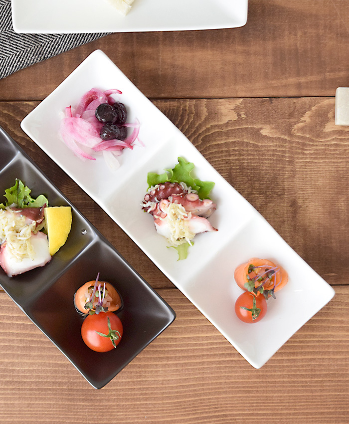 前菜皿から焼物皿まで和洋問わず使える長角皿ホワイト。