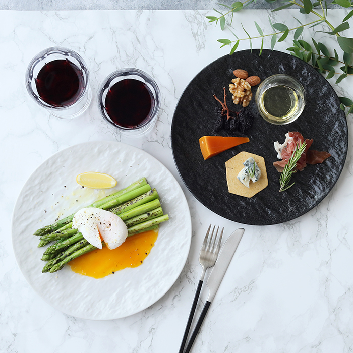 独特の風合いが楽しめるこちらのプレートのシリーズは、高級な雰囲気でまとめたり、モノトーンカラーを生かしてモダンでおしゃれな雰囲気にもできますね。