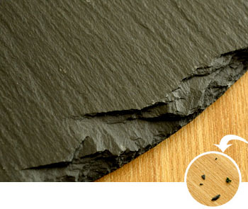 こちらは天然スレートでできたプレート。縁は細かく砕いたような自然な仕上がり。