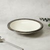 白地のなめらかな表面に黒の渕十草模様をあしらい、ほどよい存在感を持たせた中皿です。