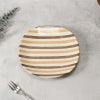 ベージュ、オレンジ、ブラウンのやわらかなストライプが目を惹く、丸みのあるスクエアプレート。