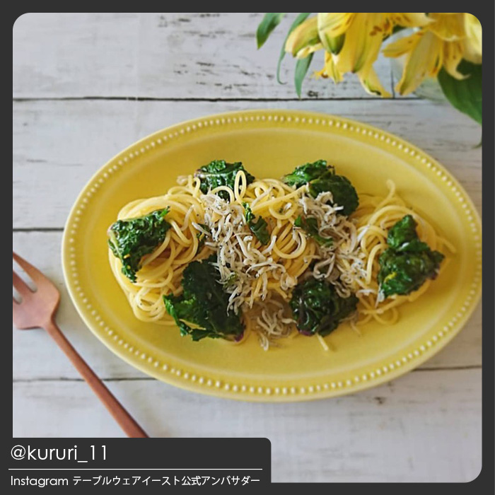 24cmのプレートは、パスタ皿、主菜皿などのディナープレートはもちろん、ワンプレートごはんとして、パンとサラダで軽めのモーニングを作るのにも便利。