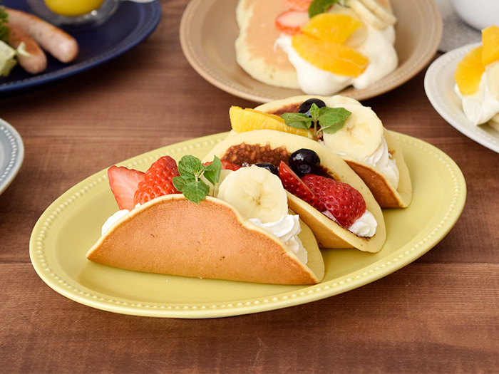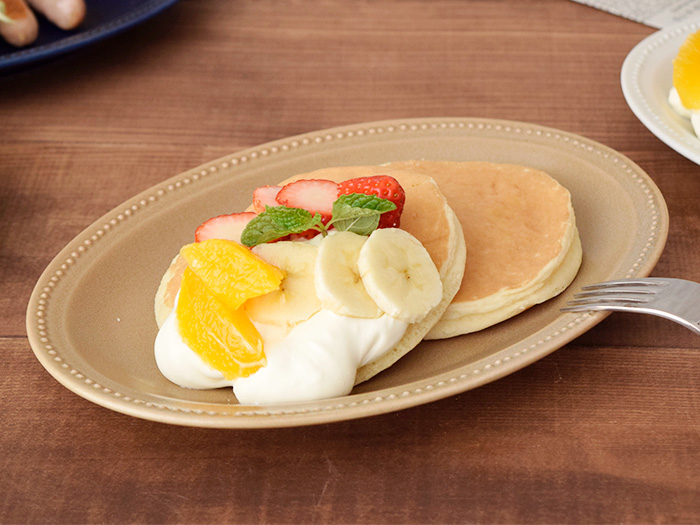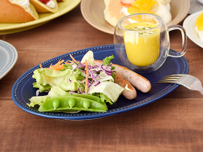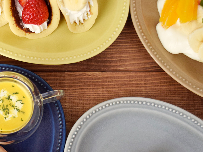 パンケーキなどのデザートがよく似合う、カフェ食器らしいカラー。フレンチトーストなどにも相性が良く、見ているだけで美味しい香りが漂ってきそうです。