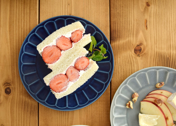 ミルクは優しい雰囲気。苺のデザートを乗せて甘いカフェ風に、ワインの前菜を乗せて大人っぽく、グリーンサラダで爽やかに、