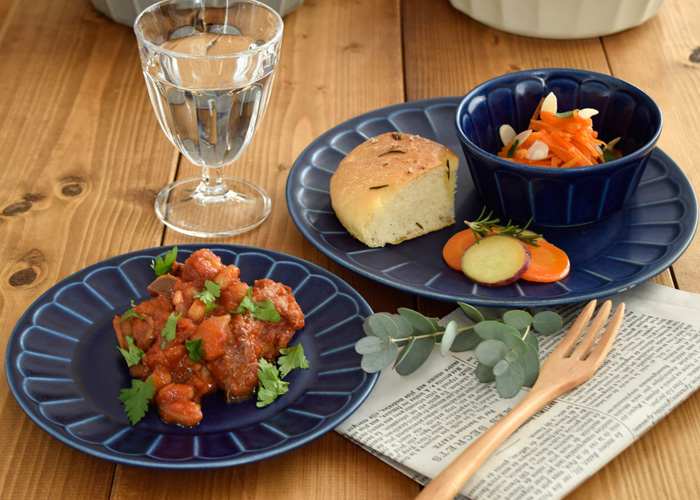 全面ネイビーの食器はありそうで意外と少ないので、食卓の上でも中心的な存在となりそう。