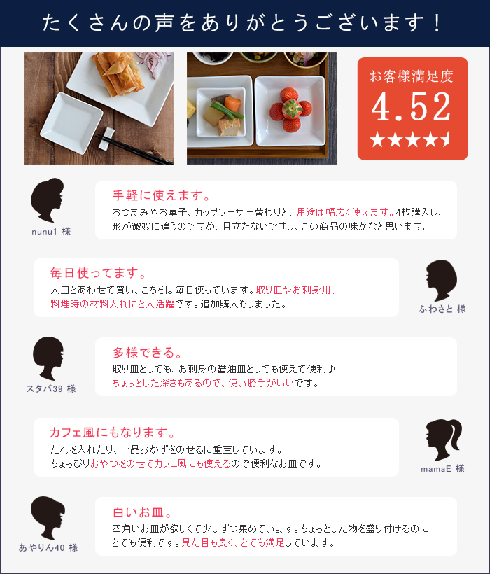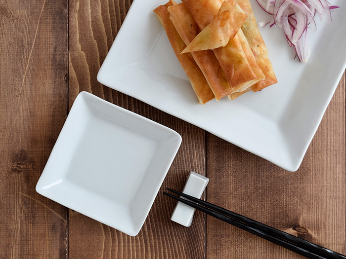 普段使いやおもてなしにもぴったりの角皿は、何枚か揃えておくと便利ですよ。