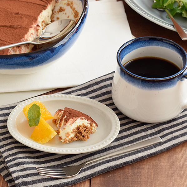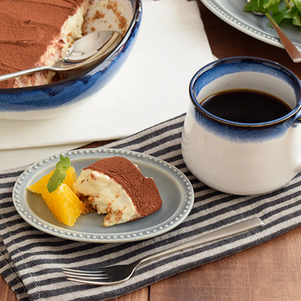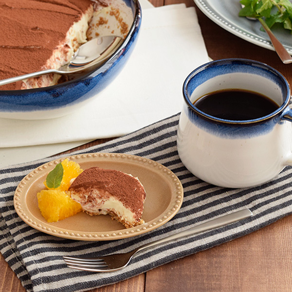 カフェ食器のようなモカは、かわいらしい焼き菓子やチョコレートといったデザートがよく似合いそうです。