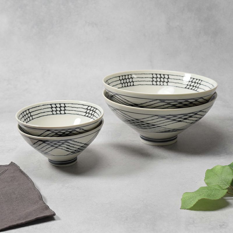今では大きなサイズから小さなサイズ、子供用のサイズ、浅型から、スープボウルのような深型、切立型や丸みのある形など様々な大きさ・形状のものが造られています。軽量のものあり、必ず手に持って使用する器であることから、自分の手になじむ持ち心地のものを選ぶのが重要です。 色や柄も様々なものが造られており、柄ものでは十草や唐草・瓢・梅など縁起の良い吉祥文様が多く描かれています。このような和風の雰囲気には和食、シンプルな無地・しのぎ・ストライプや北欧風などの洋風なものは洋食、などその日のメニューや季節、他の器に合わせてコーディネートを愉しむのも食事の時間がより豊かなものになります。