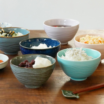6色の豊富なカラーバリエーションを取り揃えたお茶碗。 しのぎという和の技法を使いながらも、洋食器の雰囲気を持ち合わせているご飯茶碗ですので、洋食メニューの時にも合わせやすいデザインです。