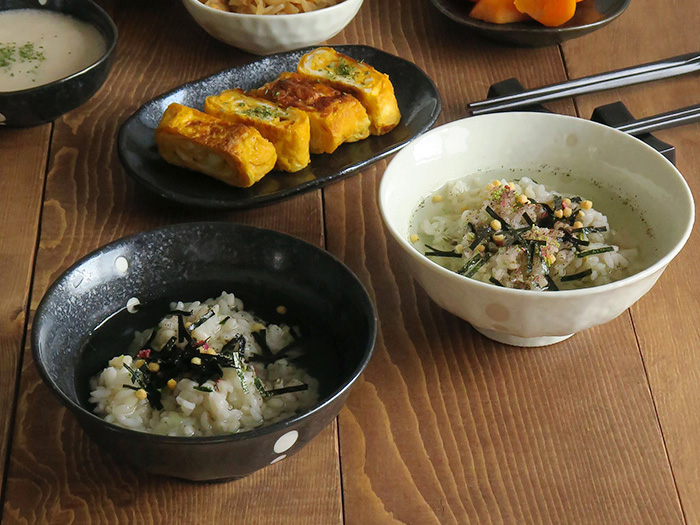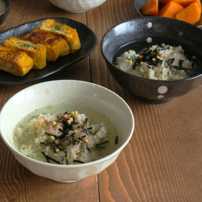 お茶漬け以外にも、とろろご飯、卵かけご飯、炊き込みご飯などの盛り付けにもぴったり。