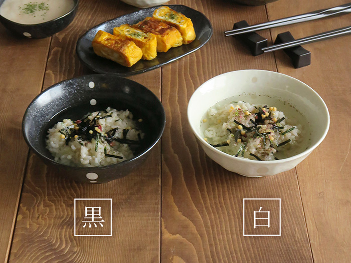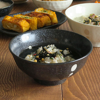 大人気のドットモノトーンシリーズのお茶漬け茶碗です。