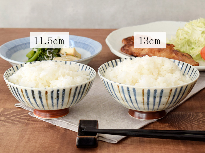 刷毛巻十草のお茶碗は、小ぶりな11.5cmサイズと、やや大きめの13cmサイズの2種類。