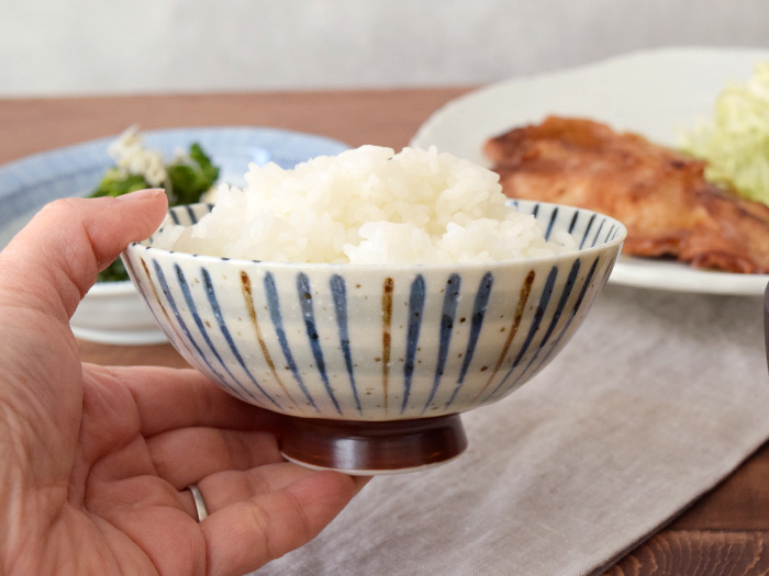 和食器でも定番柄として人気が高い、十草模様のご飯茶碗。 手描きでひいたようなストライプが、素朴な雰囲気ながらもどこか可愛く、和やかな印象を与えてくれます。 この十草模様は内側にも描かれており、炊き込みご飯などはもちろん、白いご飯が美味しそうに見えるのもポイントです。