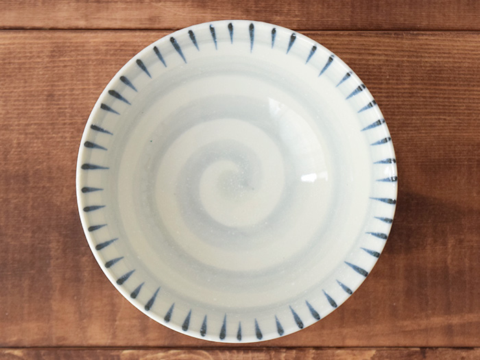 うつわの内側には渦巻きのような刷毛目模様。ご飯を少なめによそった時も色艶の引き立った美味しそうな盛り付けができます。