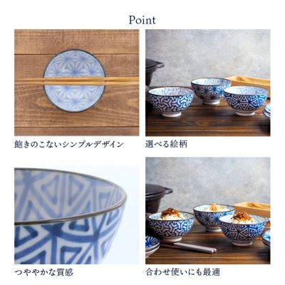 いわゆるベーシックな和のお茶碗をいくつか揃えておけば、来客時などにも重宝します。 炊いただけの白いご飯も、お茶碗の絵柄で雰囲気がガラッと変わります。少し高そうに見える絵柄のお茶碗を出せば、その他のおかずも手が込んでいるメニューのように見えてきますよ。