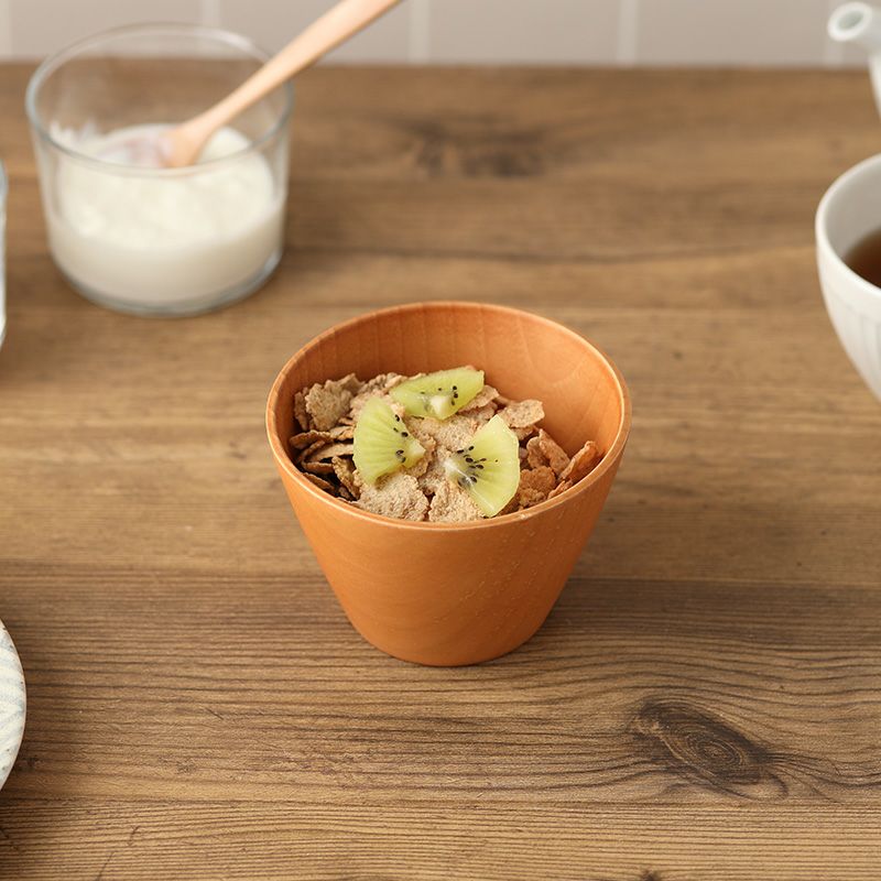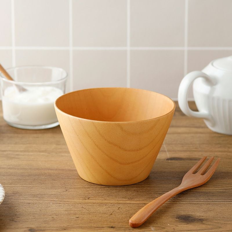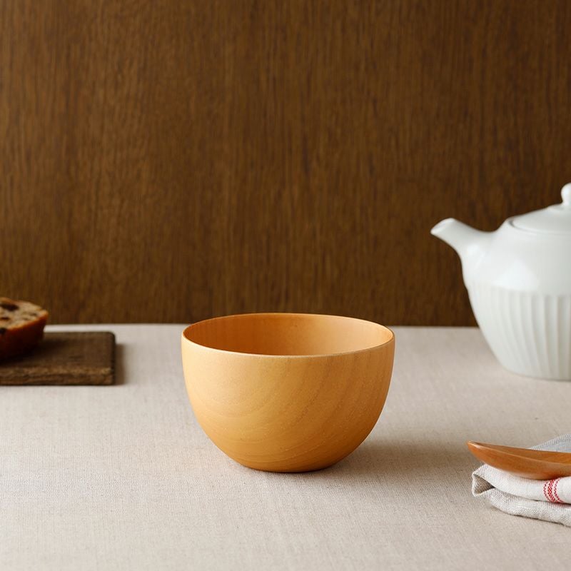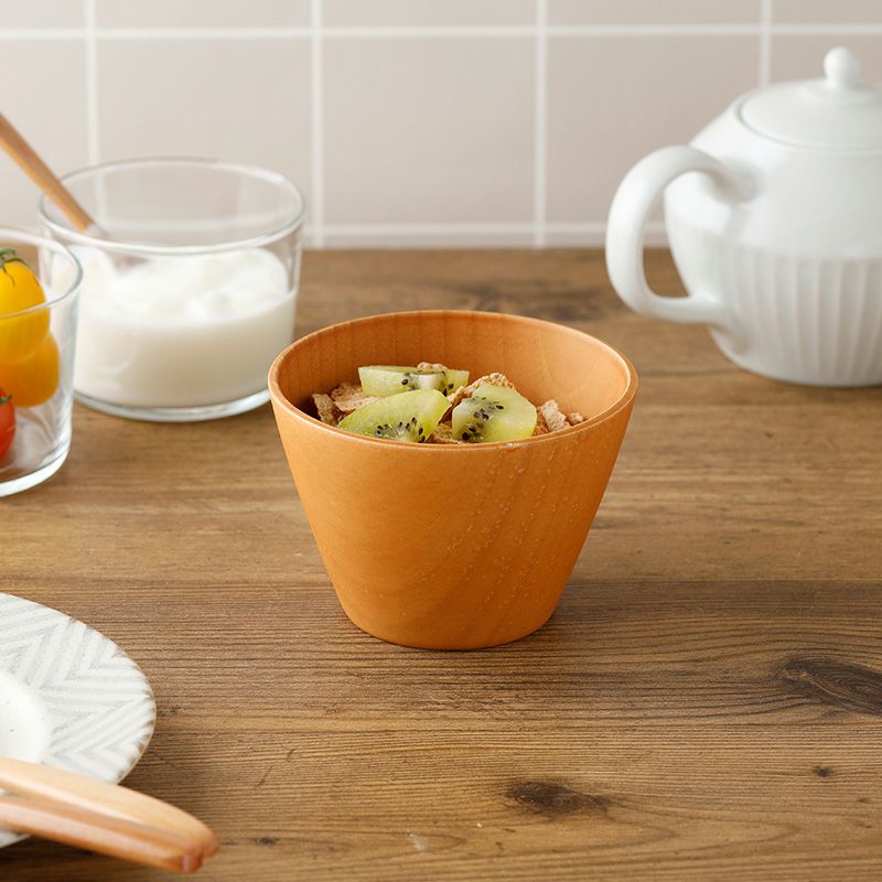 木目を感じられる汁椀は、シチューなど洋風の食べ物にもしっくり合います。北欧テイストの食卓にも似合いそうですね。