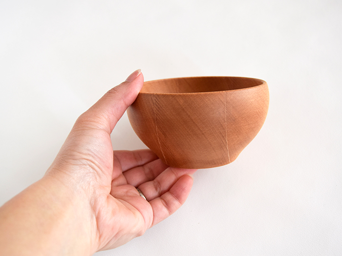 手で持った感触も天然木ならでは。毎日の食事メニューに、なかなか一汁をつけれない・・・という時も、木のお椀を楽しみに、みそ汁やスープを作るひと手間も頑張れそう。