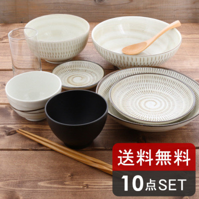 新生活、引っ越しなど、1人暮らしの方に便利な、和食器10点セット。