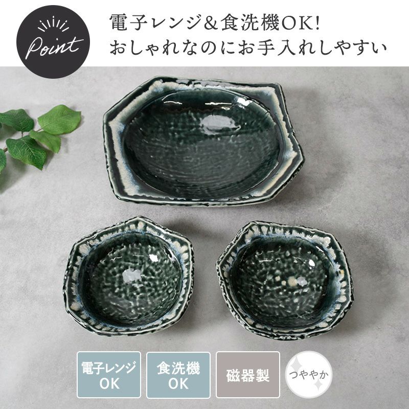 他の画像を見る 変形型で深みのあるカラーが食卓の主役になってくれる、大鉢&取り皿の3点セット 大鉢 & 取り皿 合計3点セット 黒部 ちぎり型 和食器 割引セット 送料無料 当店特別価格 ¥ 5,200 税込 カートに入れる お気に入りに登録する
