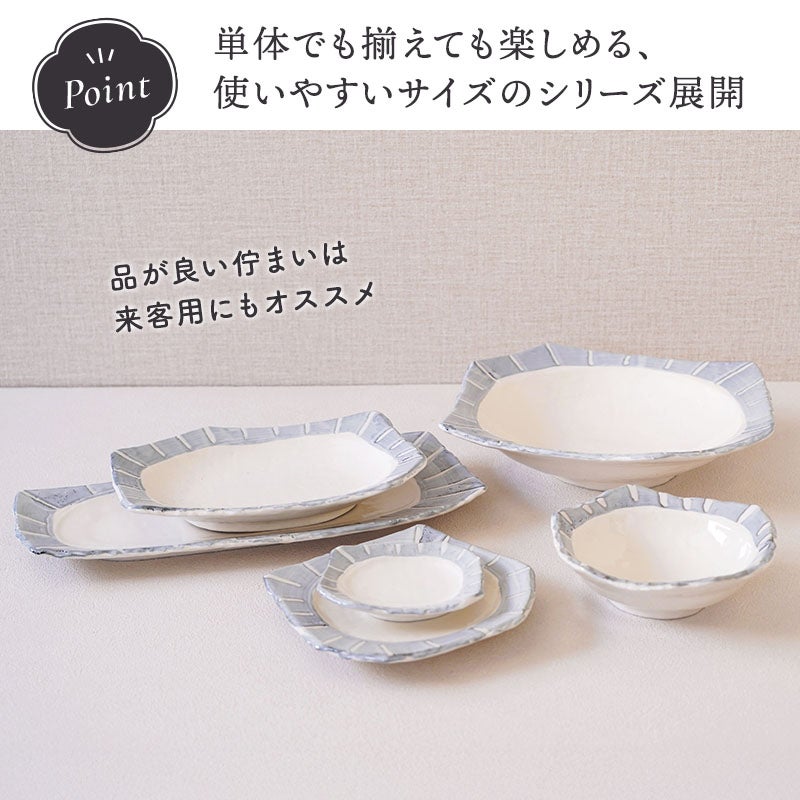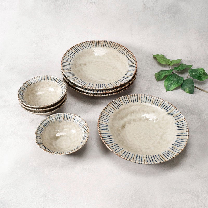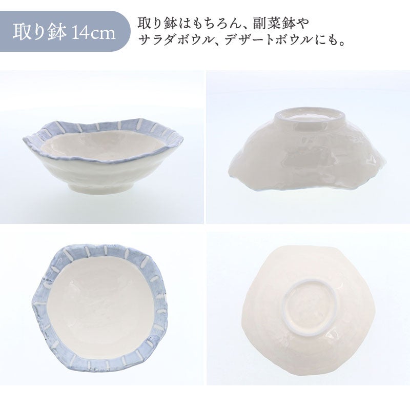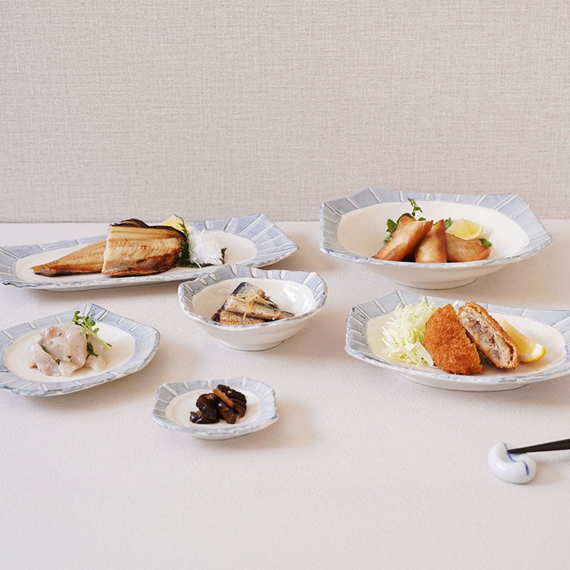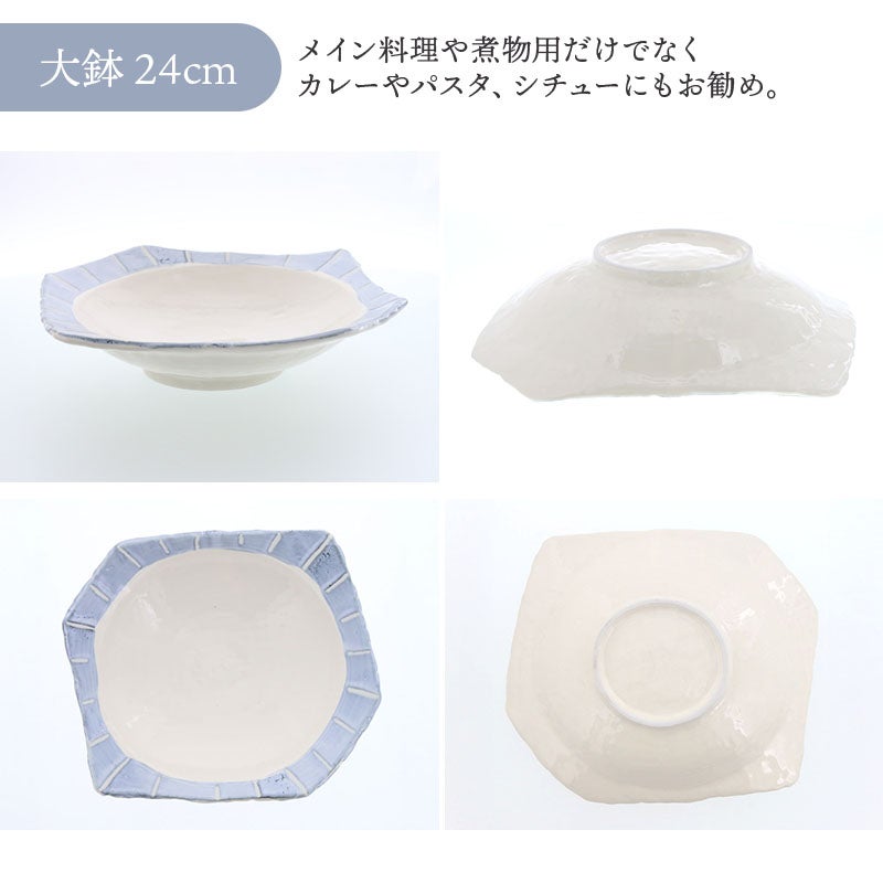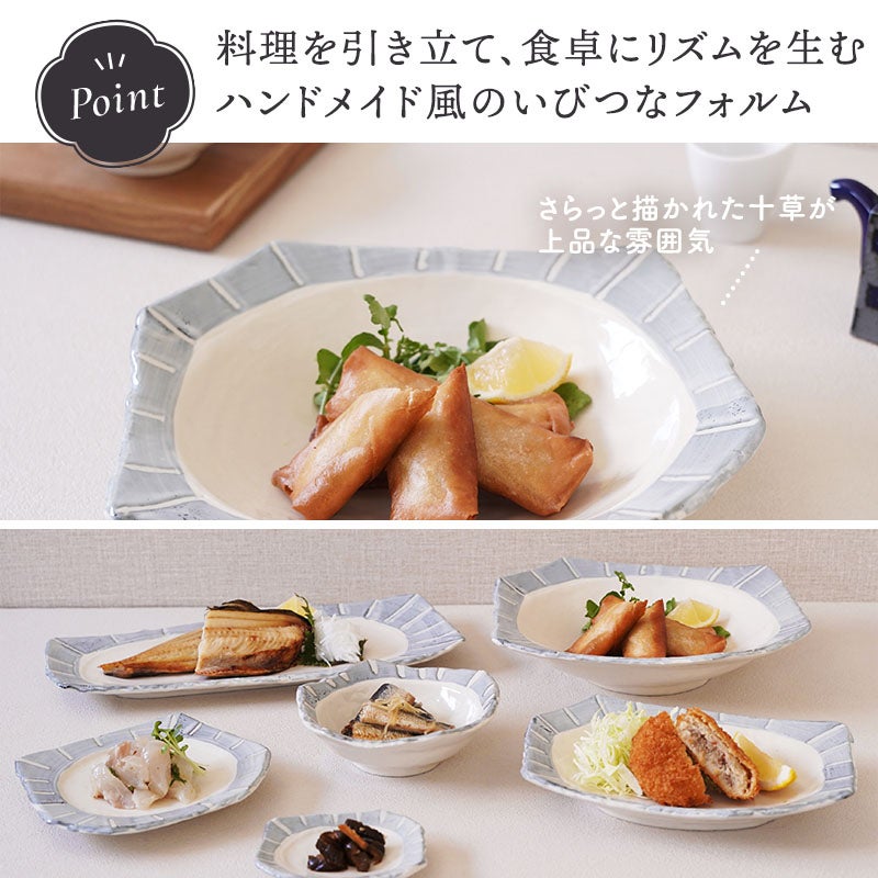 他の画像を見る 変形デザインと十草模様がおしゃれな食器6点セット なごみ十草 ちぎり型 シリーズ 各1点 合計6点セット 送料無料 当店特別価格 ¥ 10,500 税込 カートに入れる お気に入りに登録する
