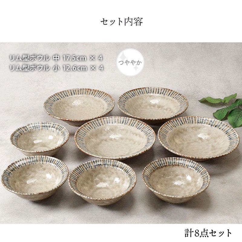 他の画像を見る 土の温もりを感じるボウルセット リム型 ボウル 中 17.5cm & ボウル 小 12.6cm 松葉 各4点 合計8点セット 松葉 送料無料 当店特別価格 ¥ 5,200 税込 在庫切れ 再入荷お知らせ お気に入りに登録する