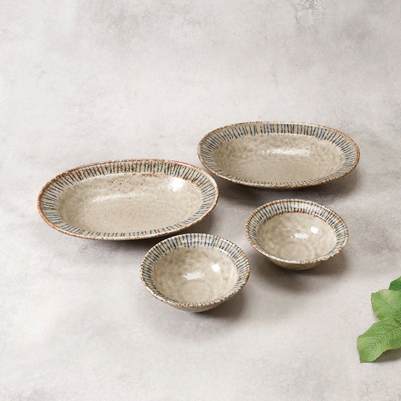 他の画像を見る 土の温もりを感じる楕円鉢&ボウルセット リム型楕円鉢 23.5cm & ボウル 小 12.6cm 松葉 各2点 合計4点セット 松葉 送料無料 当店特別価格 ¥ 4,900 税込 在庫切れ 再入荷お知らせ お気に入りに登録する