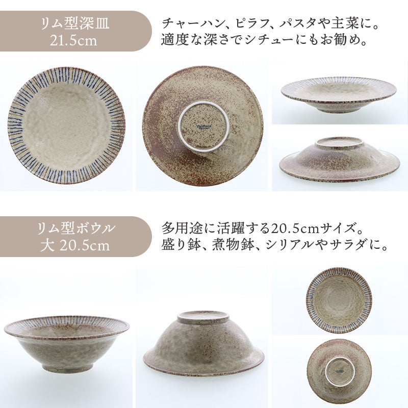 他の画像を見る 土の温もりを感じる深皿&ボウルセット リム型 深皿 21.5cm & ボウル 小 12.6cm 松葉 各4点 合計8点セット 松葉 送料無料 当店特別価格 ¥ 5,800 税込 在庫切れ 再入荷お知らせ お気に入りに登録する