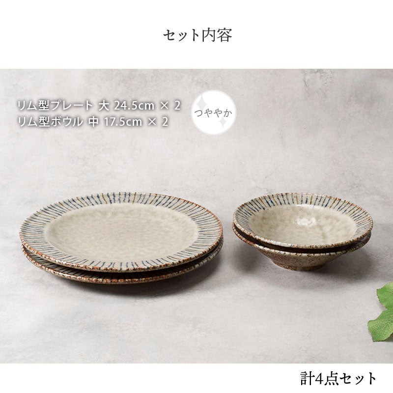 他の画像を見る 土の温もりを感じるリム型プレート&ボウル4点セット リム型 プレート 大 24.5cm & ボウル 中 17.5cm 各2点 合計4点セット 松葉 当店特別価格 ¥ 4,000 税込 在庫切れ 再入荷お知らせ お気に入りに登録する