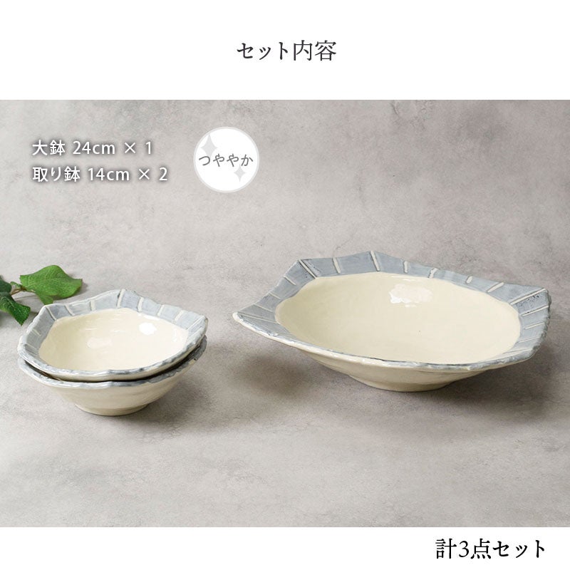 他の画像を見る 変形デザインと十草模様がおしゃれな大鉢&取り鉢の3点セット 大鉢 1点 & 取り鉢 2点 合計3点セット なごみ十草 ちぎり型 送料無料 当店特別価格 ¥ 5,900 税込 カートに入れる お気に入りに登録する