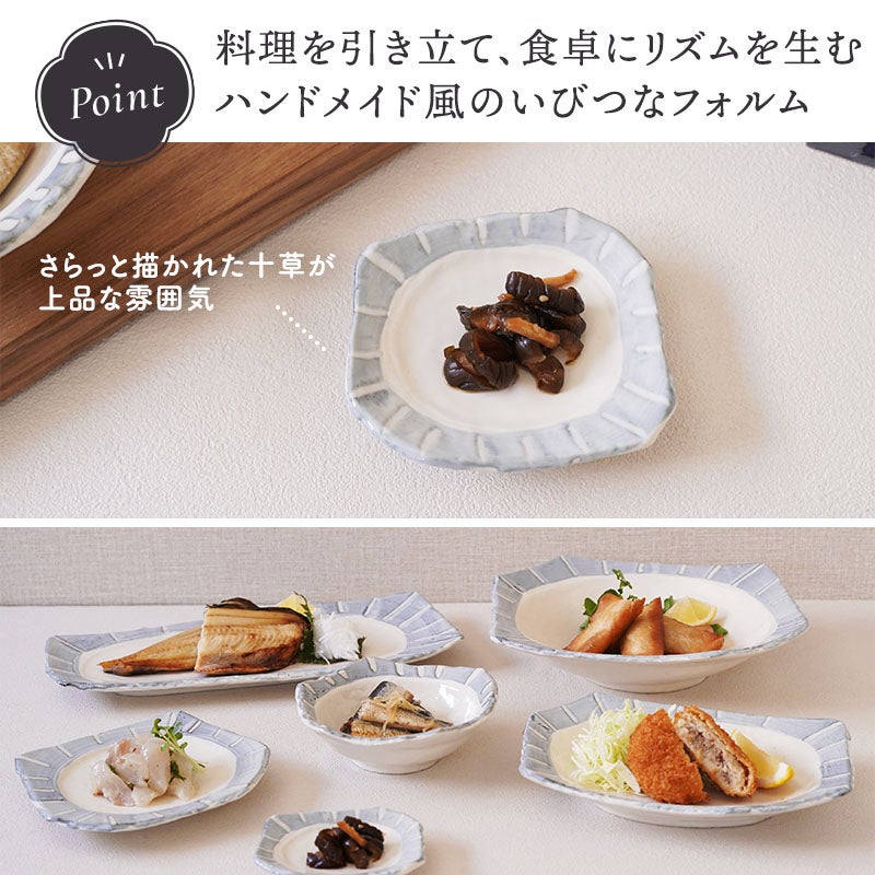 他の画像を見る 変形デザインと十草模様がおしゃれな焼物皿&小皿の4点セット 焼物皿 &小皿 各2点 合計4点セット なごみ十草 ちぎり型 送料無料 当店特別価格 ¥ 6,100 税込 カートに入れる お気に入りに登録する