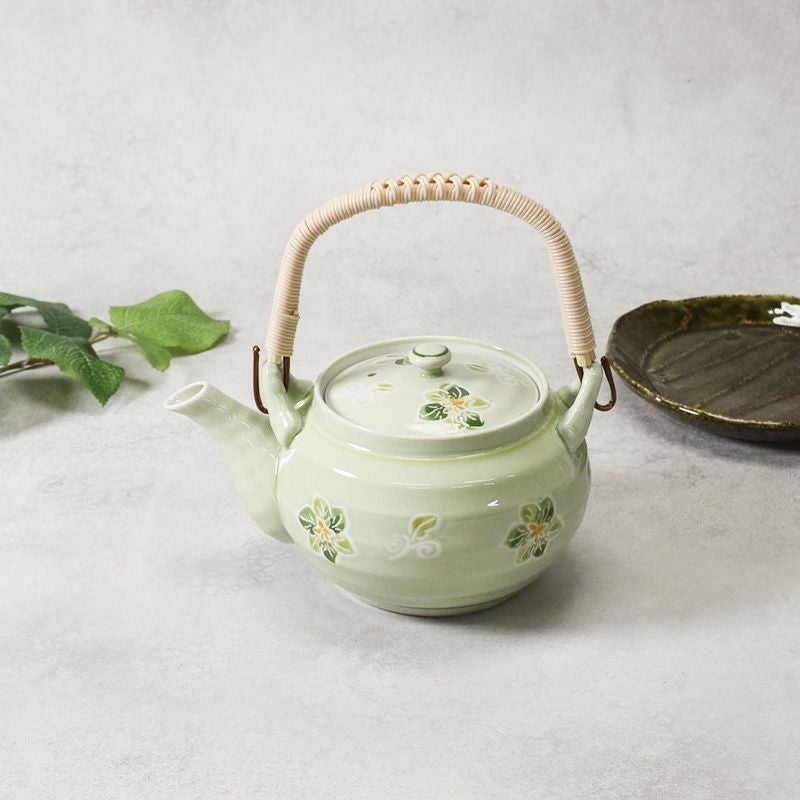 【最大50%OFFセール】花模様と緑彩が美しい、上品な土瓶 在庫限り 土瓶 610cc 緑彩 4-5人用 タイ製