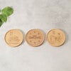 天然木ならではのやさしい風合いに、日本の名所や文化をモチーフにした絵柄が映えるコースターです。