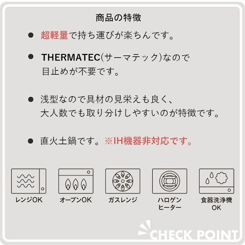 他の画像を見る 軽くて丈夫!多用途に活躍する2~3人用の超軽量土鍋 超軽量土鍋 8号 2~3人用 SUPER LIGHT CLAYPOT IH・直火可 当店特別価格 ¥ 13,200 税込 カートに入れる お気に入りに登録する