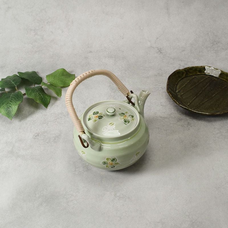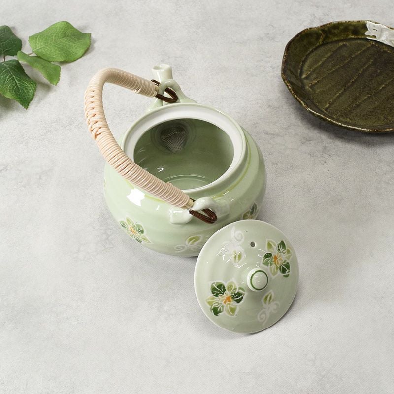 他の画像を見る 【最大50%OFFセール】花模様と緑彩が美しい、上品な土瓶 在庫限り 土瓶 610cc 緑彩 4-5人用 タイ製 定価 ¥ 2,000 のところ 当店特別価格 ¥ 999 税込 販売期間 2026/03/03 20:00 〜 2026/03/11 9:59 カートに入れる お気に入りに登録する