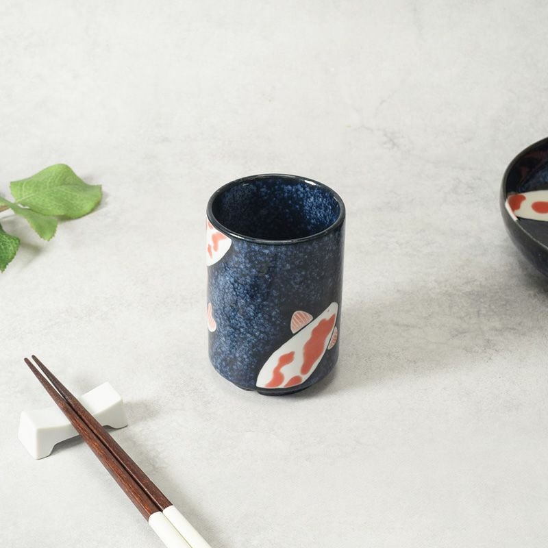 他の画像を見る 深い藍が映える、縁起の良い錦鯉モチーフの寿司湯呑 寿司湯呑 280cc 錦鯉 Nishiki Goi sushi yunomi 当店特別価格 ¥ 1,430 税込 カートに入れる お気に入りに登録する