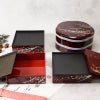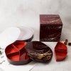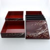 黒朱溜色に金の花柄は高級感があり、内側の朱色がお料理を引き立てます。ハレの日にもぴったりの重箱です。