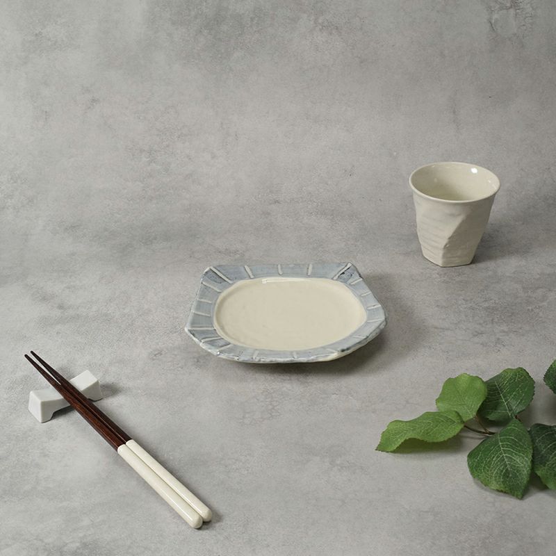 個性的な変形型がおしゃれな和食器プレート。和の雰囲気たっぷりのうつわですが、洋食を盛りつければ和カフェ風のコーディネートも楽しめます。