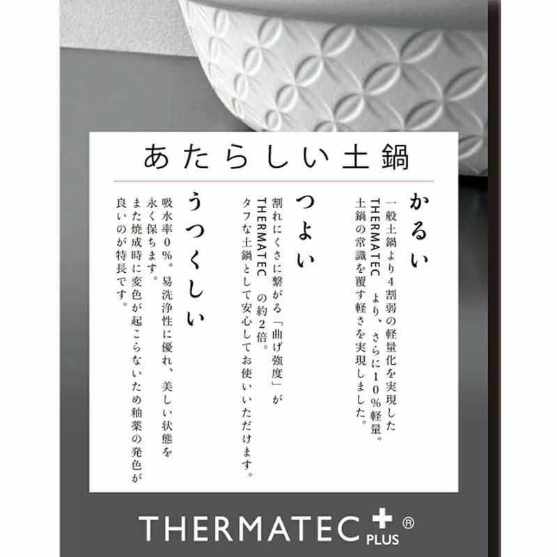 他の画像を見る 軽くて丈夫!多用途に活躍する2~3人用の超軽量土鍋 超軽量土鍋 8号 2~3人用 SUPER LIGHT CLAYPOT IH・直火可 当店特別価格 ¥ 13,200 税込 カートに入れる お気に入りに登録する