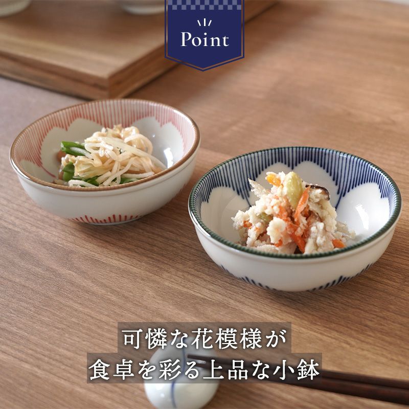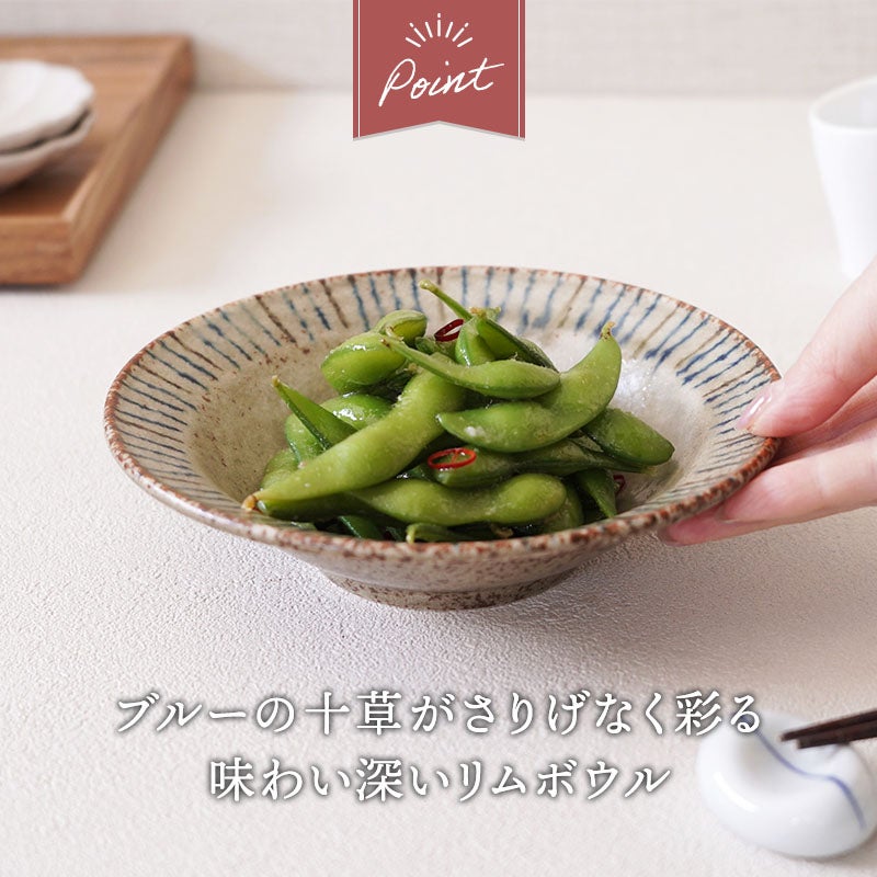 白地に瑠璃色のシンプルな柄が食卓を明るくしてくれる、小さな小鉢です。 漬物・おしょうゆ皿、ソースやディップ入れに、お浸しや和え物などの副菜の盛りつけに活躍します。おつまみをちょこちょこのせて、テーブルに乗せても可愛いですよ。