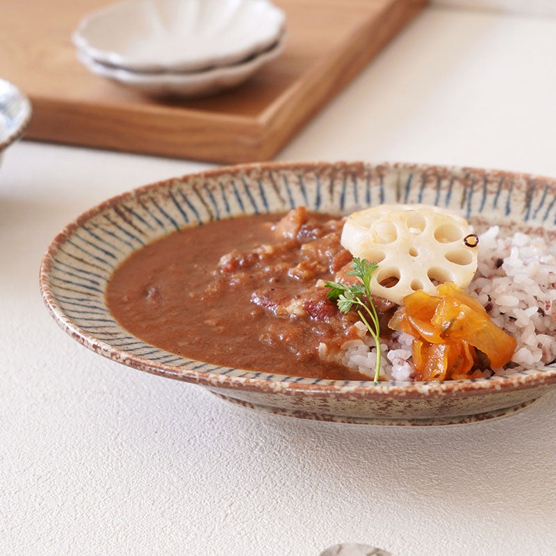 エイやサメ類の魚皮のことをかいらぎといい、戦国時代や江戸時代にはその皮を研いで様々な装飾に用いていました。 複雑に入った模様は一つ一つ表情が異なり、印象的でシンプルな料理も華やかに見せてくれます。和食はもちろん、洋食やアジアン料理にもしっくり馴染むんですよ。