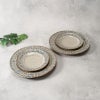 土の温もりを感じる素朴な質感に、松葉を思わせる細い線が並ぶプレート4点セット。