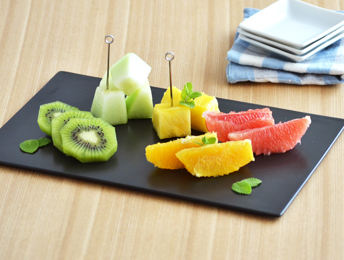 大人の雰囲気のブラックカラーはチーズや前菜をちょこちょこと盛り付けてるだけで完成されたひと皿に演出してくれます。テーブルをギュッと引き締めてくれるカラーです。