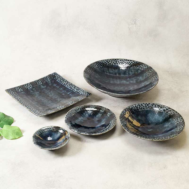 他の画像を見る 深い藍色が食卓を上品に彩るうつわの5点セット 槌目型 銀波 シリーズ 各1点 合計5点セット 送料無料 当店特別価格 ¥ 8,100 税込 在庫切れ 再入荷お知らせ お気に入りに登録する
